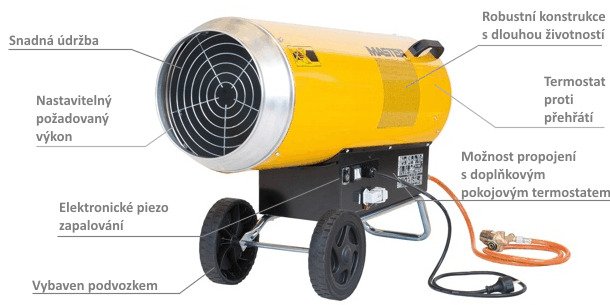 Plynová topidla MASTER poskytují okamžitě velký objem teplého vzduchu. Jsou finančně nenáročná na provoz, robustní a výkonná. Mobilní plynová topidla jsou vhodným řešení pro dobře větratelné prostory jako jsou stavby, sklady apod.
